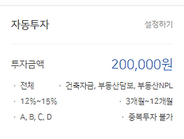 최소 투자금 1만 원으로 변경되어 5만 원도 투자할 수 있게 되어 다음과 같이 수동으로 투자한 것이고요.