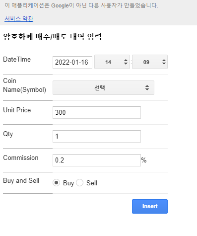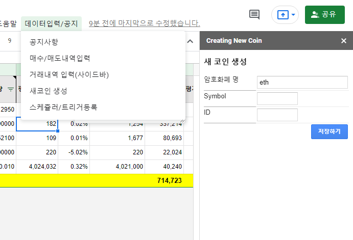 매번 시트를 접속해서 입력하기 힘들어서 스마트폰에서 입력할 수 있도록 웹페이지를 만들면서 암호화폐 수익률 관리 시트에 오류가 발견되어 수정했습니다.
